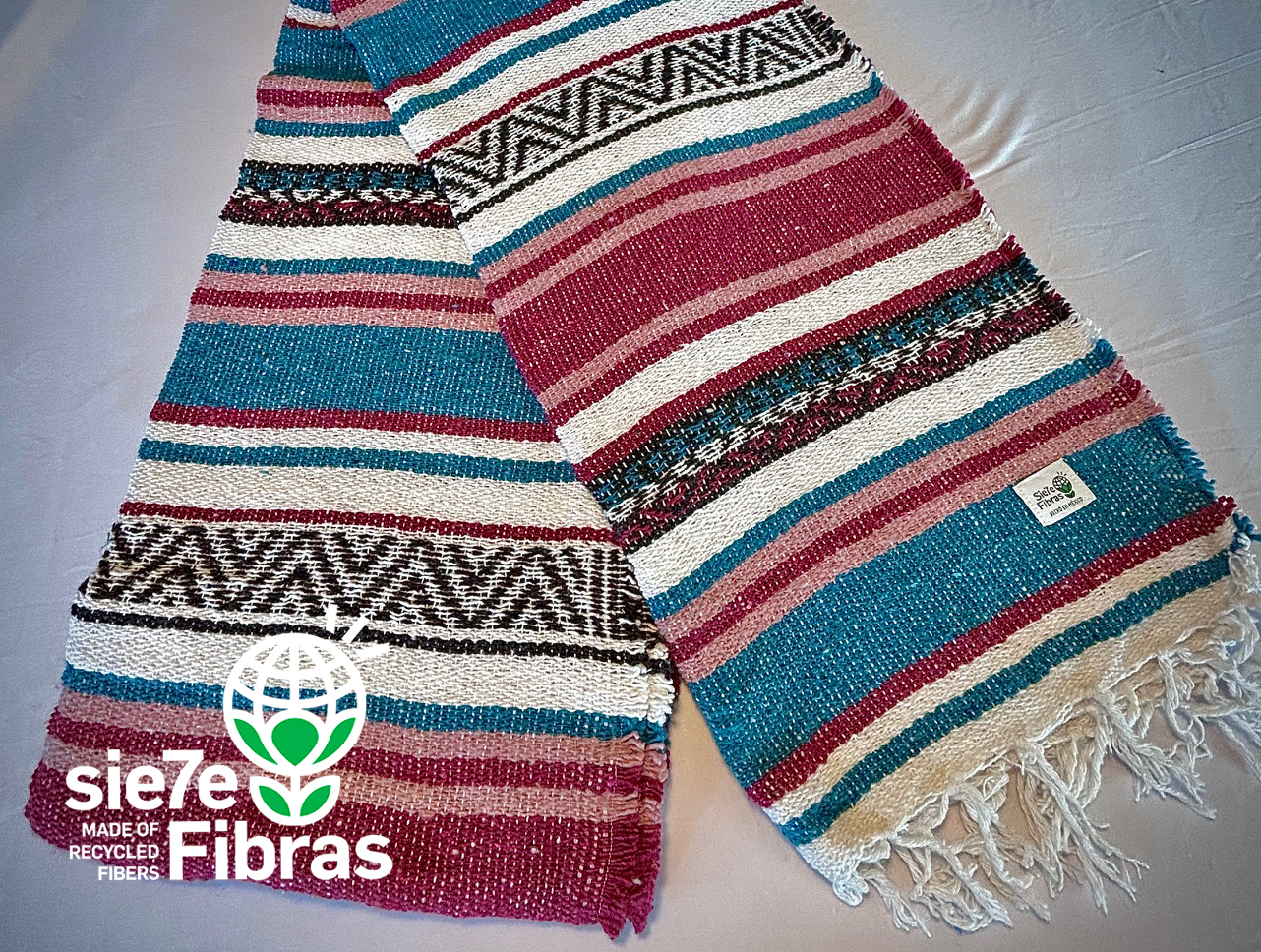 Manta Mexicana o Falsa Blanket realizada 100% con fibras recicladas.