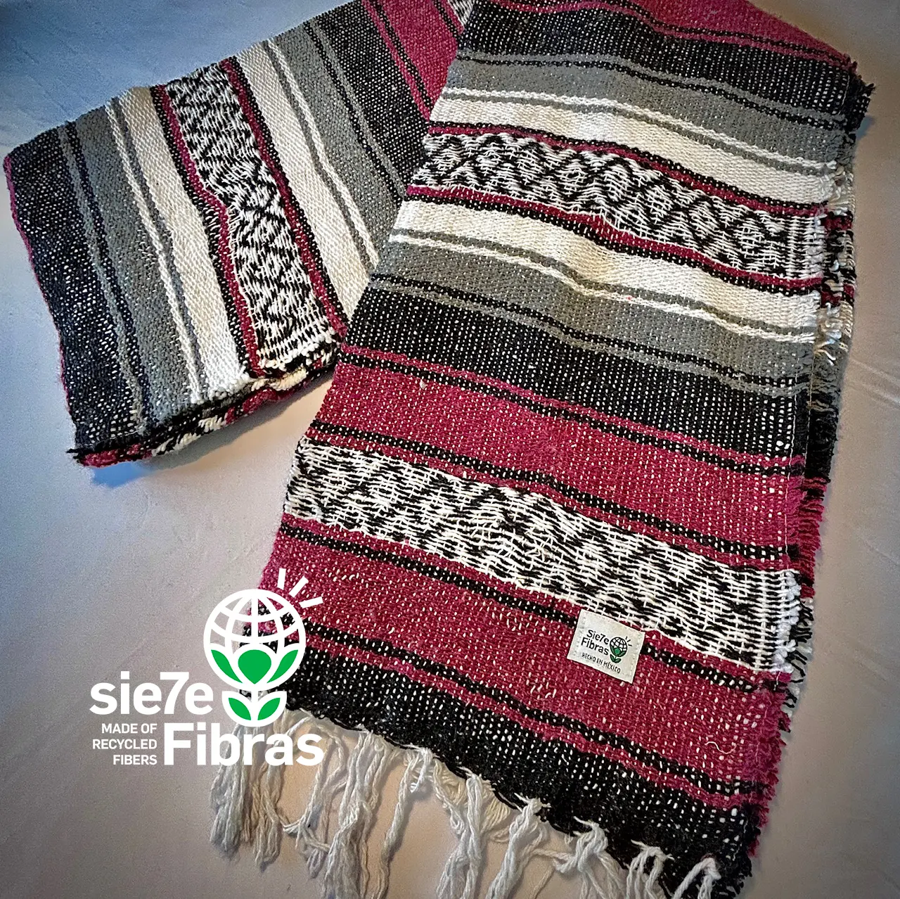 Manta Mexicana o Falsa Blanket realizada 100% con fibras recicladas.