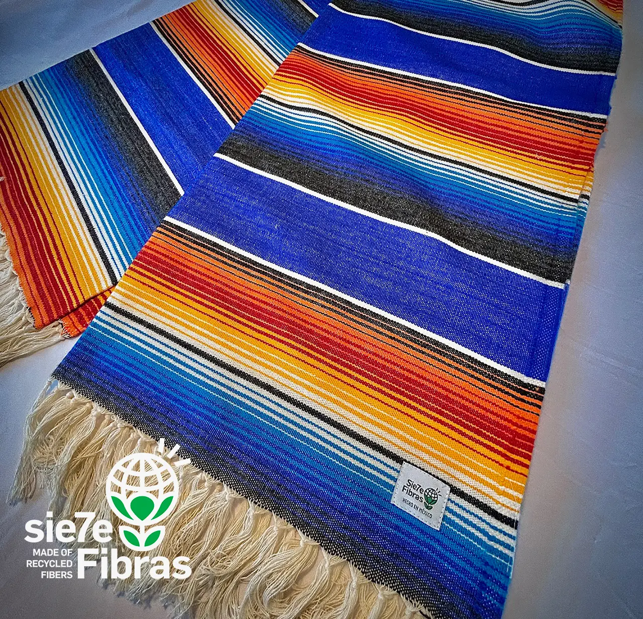 Manta Mexicana o Falsa Blanket realizada 100% con fibras recicladas.