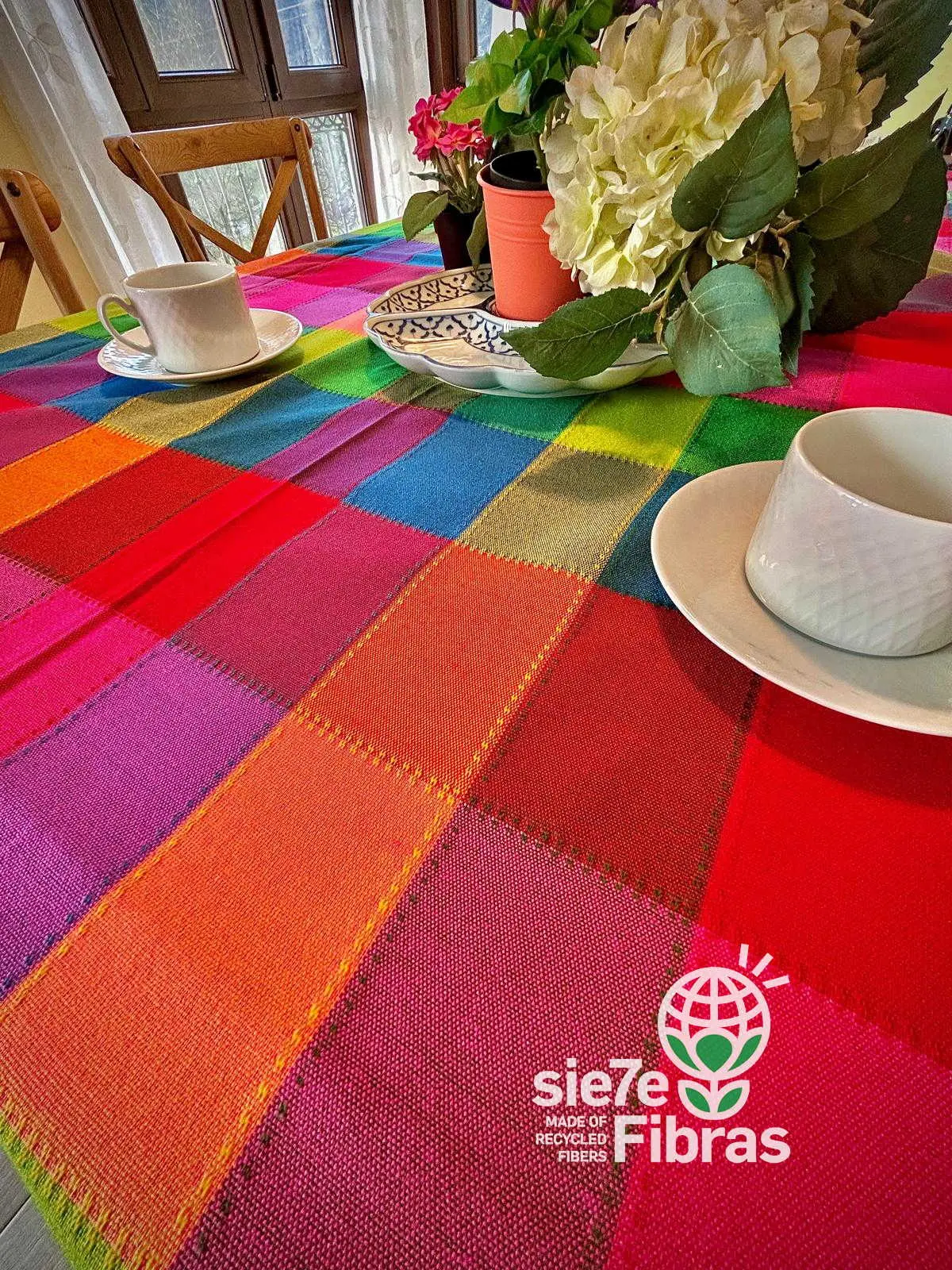 Una artesanía en tu mesa, terminado a mano en cada orilla, este mantel es colorido, resistente y agregará brillo a todo espacio.